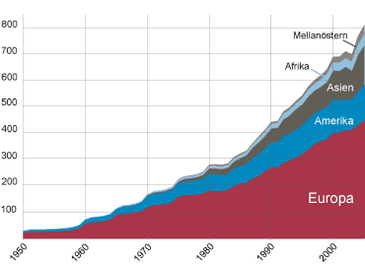 Så här i sportlovstider är det många som väljer att resa. Det har blivit enklare och billigare att resa och allt fler packar väskorna på semestern. 1950 var antalet turister i världen 25 miljoner. 2005 hade siffran ökat till 800 miljoner och preliminära siffror för 2007 pekar på att svindlande 900 miljoner överstigits. Europa är den främsta destinationen men resandet till Asien och Mellanöstern ökar snabbt.
